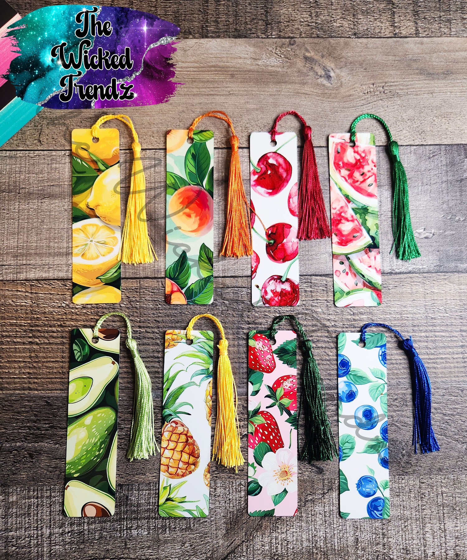 Fruit Lemons Watermelons Peaches Blueberries Avocado Metal Bookmark Library Reading Book Club Gift